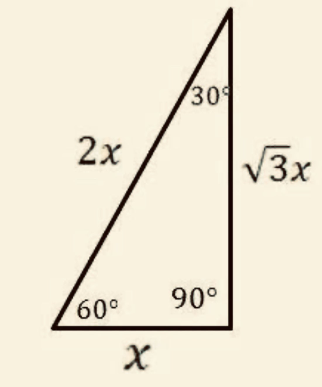 يقصد بالقاعدة أحد أضلاع المثلث و يقصد بالارتفاع العمود النازل من الرأس على القاعدة أو على امتدادها. المثلث قائم الزاوية وهناك أنواع عدة للمثلث القائم مثل المثلث الثلاثيني الستيني الذي تكون زواياه 30 60 90 والمثلث قائم. معروف أن في المثلث الثلاثيني الستيني.